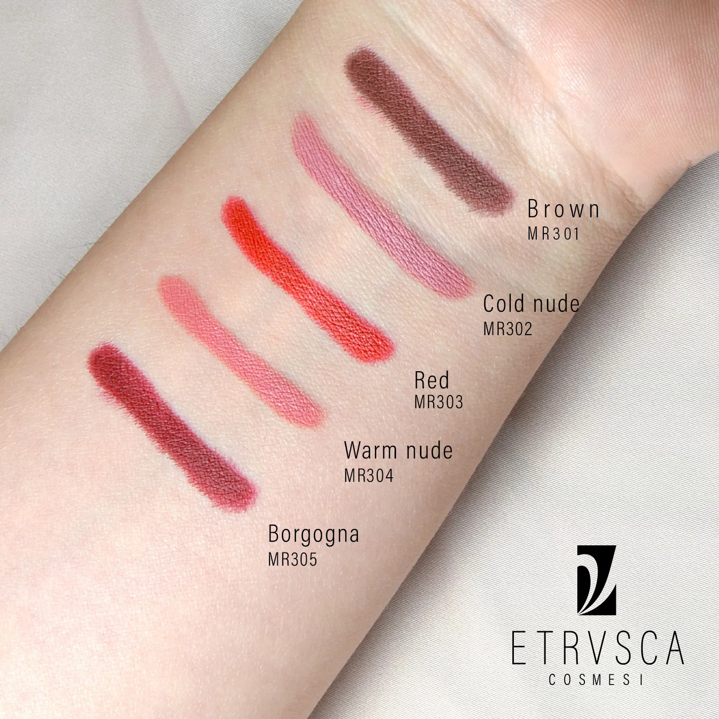 MR302-304 COCOS NUCIFERA (COCONUT) OIL, OCTYLDODECYL STEAROYL STEARATE, HYDROGENATED VEGETABLE OIL, C10-18 TRIGLYCERIDES COPERNICIA CERIFERA (CARNAUBA) WAX , MICA, POLYGLYCERYL-3 DIISOSTEARATE, EUPHORBIA CERIFERA (CANDELILLA) WAX, ORYZANOL, TOCOPHEROL ,GLYCERYL CAPRYLATE.