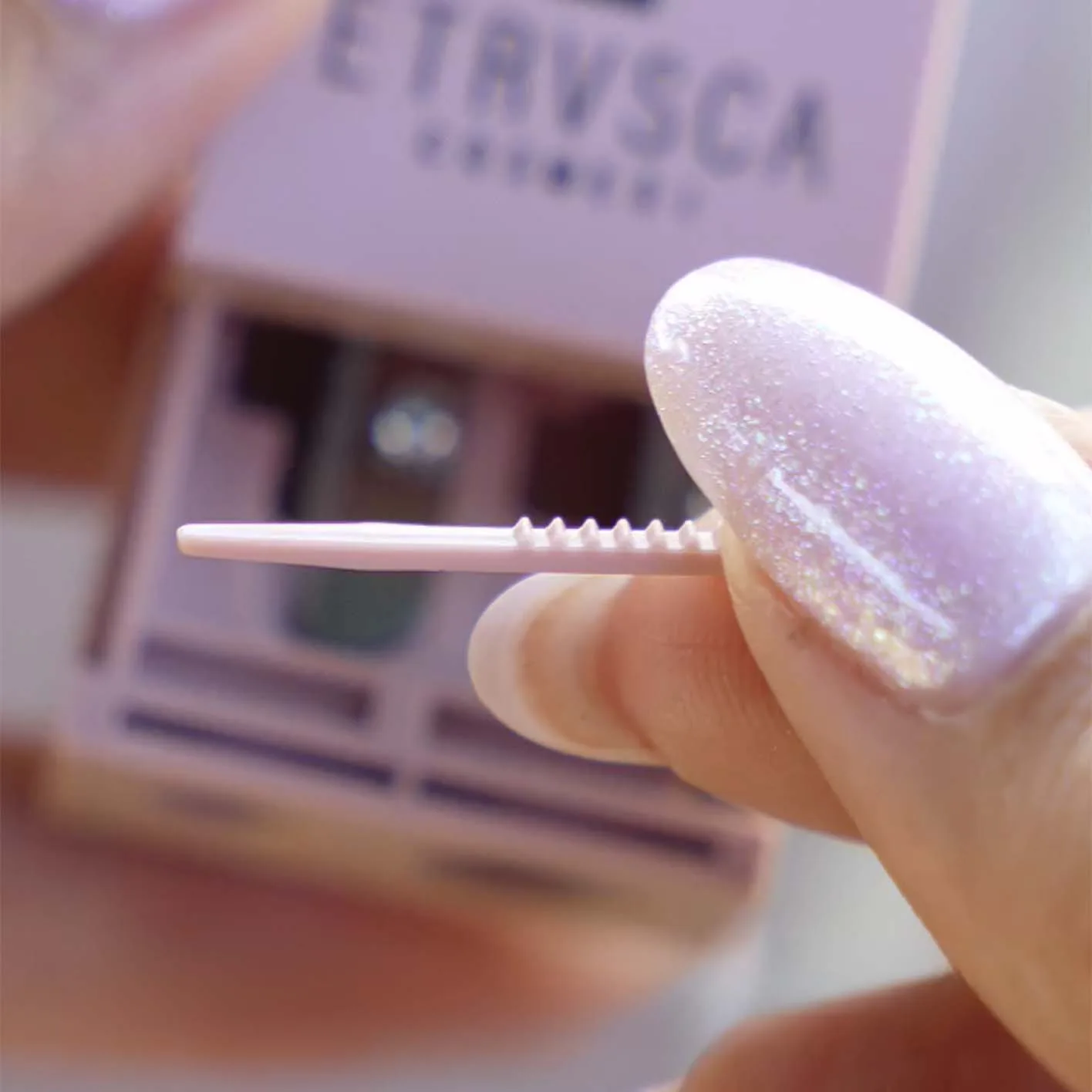 Con doppia lana in acciaio, apribile e con serbatoio per i residui di temperaggio. Accessoriato con un pratico stecchino estraibile per pulire meglio le lame